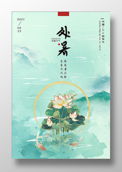 绿色唯美处暑节气海报设