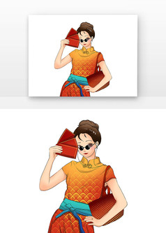 原创元素福娃小孩在新年戴着虎头帽小元素