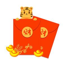 卡通手绘高清免抠Q萌抱金元宝小老虎