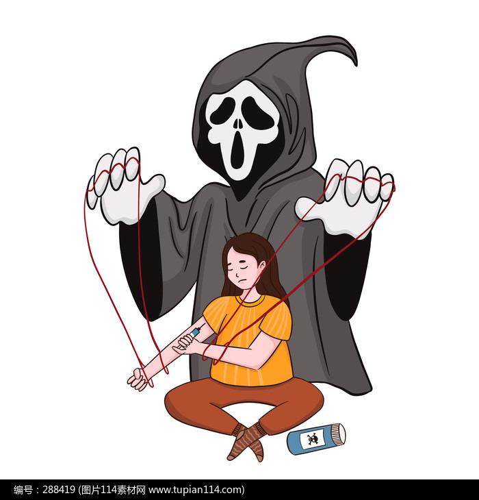 手绘灰色衬衫骷髅女孩禁毒禁毒日