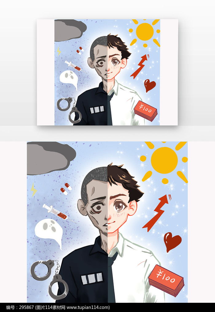 吸毒漫画新型毒品损害健康禁毒宣传插画