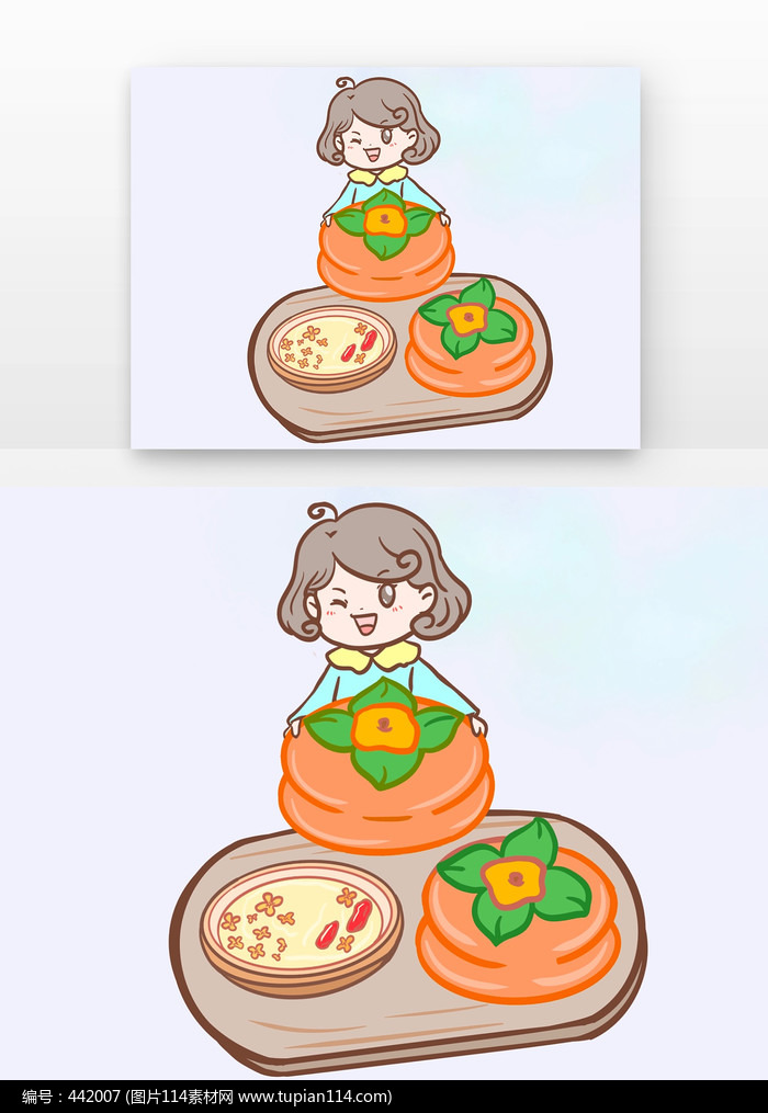 秋分人物与柿子组合